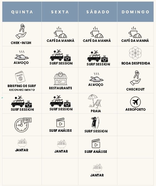 - Transfers aeroporto e sessões de surf